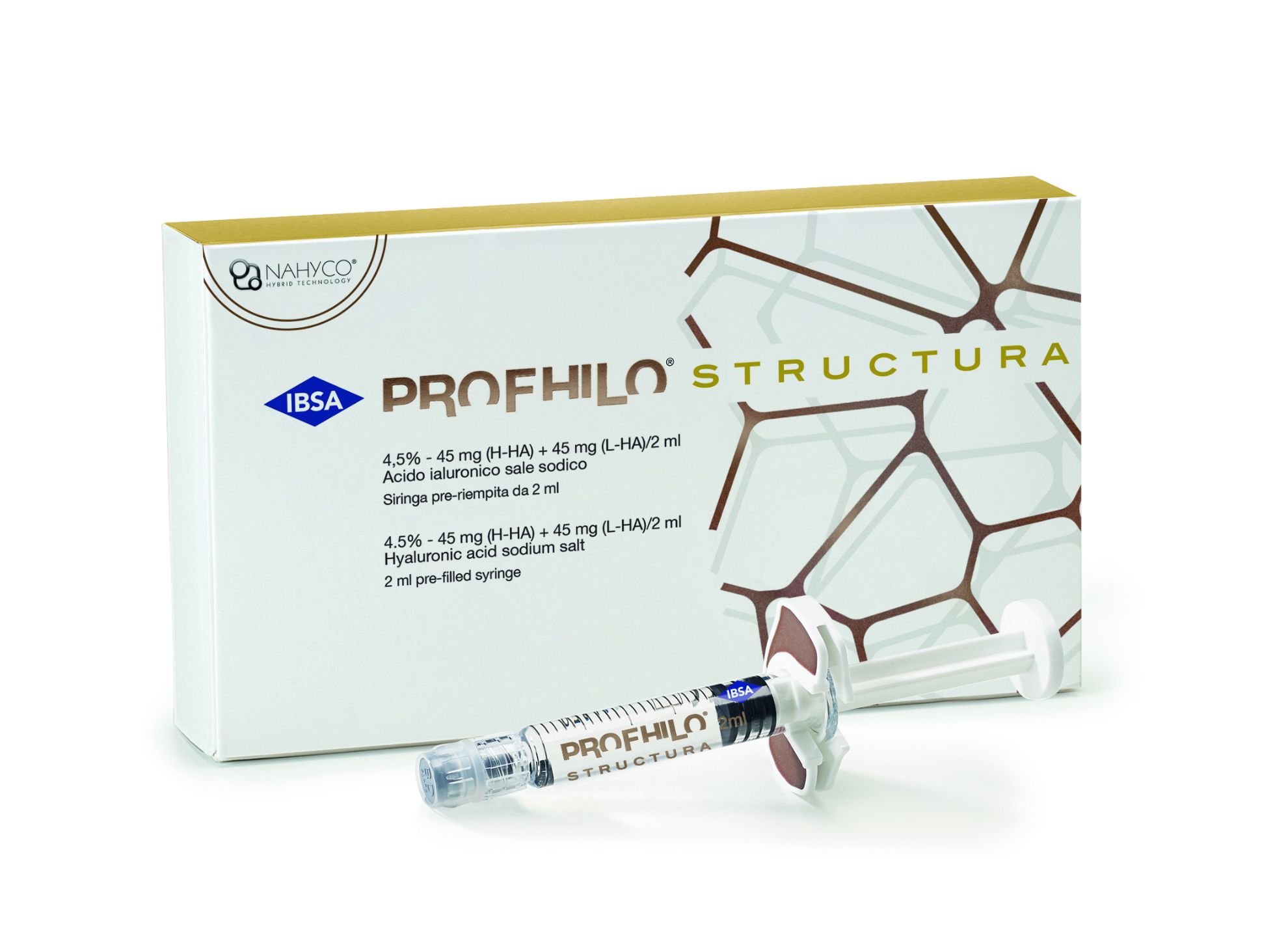 Profhilo® Structura ist ein einzigartiger Hybridkomplex aus hoch- und niedermolekularer Hyaluronsäure, der speziell zur Wiederherstellung von Volumenverlusten und zur Verbesserung der Hautstruktur entwickelt wurde. Es zielt darauf ab, das Unterhautfettgewebe zu regenerieren und Volumendefizite, die durch den Alterungsprozess entstehen, auszugleichen.